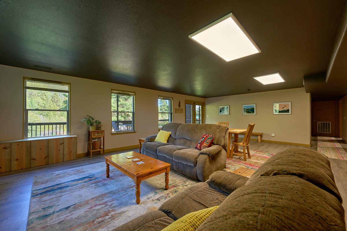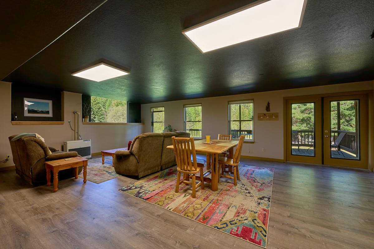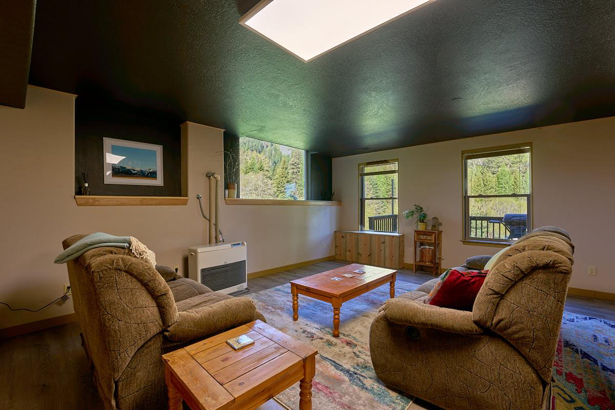 The Riverside Suite, is located in the lower half of the park's main residence and is accessed via a private entrance. From a spacious riverfront deck, guests can gaze up the West Fork with beautiful Craig Mountain in the distance. Perfect for couples, friends, or solo travelers who cherish privacy, space and views!